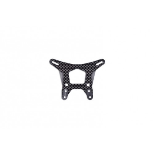 5mm carbon fiber front shock tower for the Team Associated T6.2. The tower has webbing for added strength. All edges have a nice chamfer.  It incorporates micro tune shock positioning by adding a hole in between the one and two holes of the stock tower. The back of the tower has a 1mm recess to keep the stock shock angle.