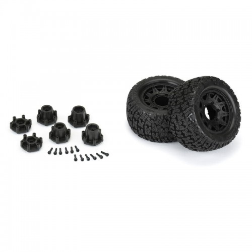 • (2) Pre-mounted Bonesaw 2.8" Tires on Raid Black 6x30 Removable Hex Wheels
