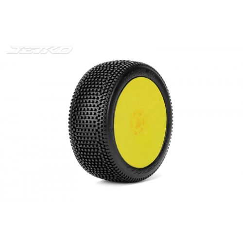 BLOCK IN:1/8Buggy/Dish/Yellow Rim/Ultra Soft/Glued MTD Tires (2) By Jetko