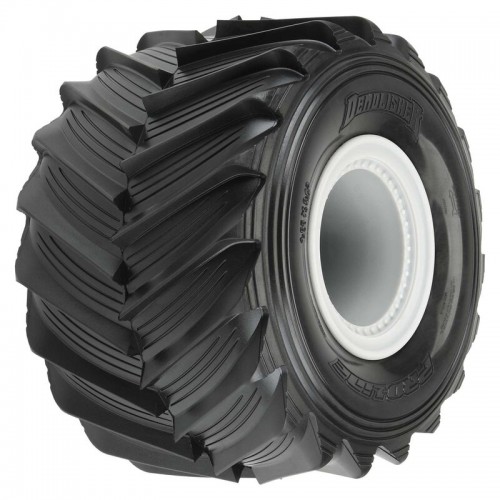 Losi® has unleashed the most exciting solid axle monster truck ever produced with the all-new LMT (Losi® Monster Truck) and Pro-Line already has you covered with high-performance Demolisher tires made specifically for your new truck! The Demolisher tires are mounted onto the stock gray LMT wheels (LOS43033) and feature extremely sharp tread that will bite into any surface. Just like full-size monster truck tires that have been modified and grooved for maximum performance, the Demolisher tires feature scale grooves in between the chevron style tread for exceptional scale realism. As you should expect from Pro-Line, the all-new Demolisher tire is made from soft and sticky rubber that will give your LMT maximum wheelie-popping traction. Demolish the competition with Pro-Line's new pre-mounted Demolisher LMT tires! Get your own set today!