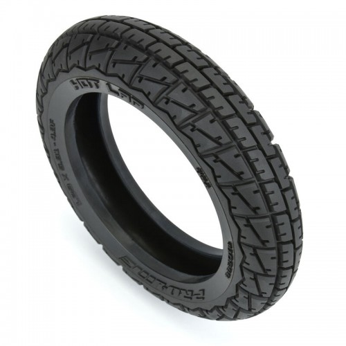 The Hot Lap MX features a deep, geometric grooved tread that provides great forward bite, a predictable, smooth steering feel, and great tread cleanout. It's perfect for Dirt Oval racing but can also be used as a road course racing tire or an all-around street bashing tire! It's available in either M3 (Soft, Unmounted) or S3 (Long wear, Premounted) compounds to suit your track or driving style's specific needs, and like every other tire that Pro-Line makes it is proudly Made in the USA! It is sized to fit our Supermoto-sized wheels (Front PRO282003) for an ultra-scale look on your bike.