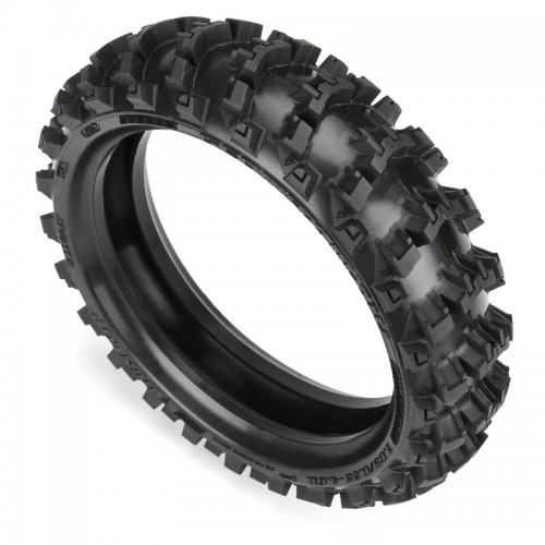 The MX14 tire utilizes Pro-Line's V2 Bead style, which has benefits in both ease of use and aesthetics. The wide, flat 1/8 buggy-style glue mounting bead makes tire gluing a cinch. The beads overall have been brought in towards the center of the wheel, which creates a much more scale-looking tire profile that matches your real dirt bike. This tire will only fit Pro-Line wheels with V2 Bead style, such as the Bullyspoke plastic wheels (PRO283303).