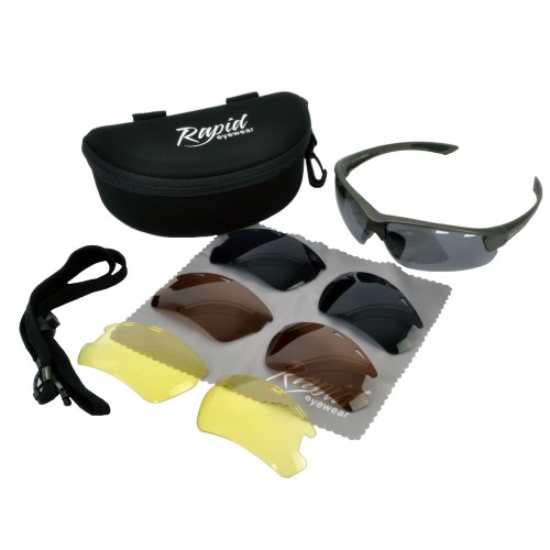 Groove Sunglasses TR90 frame 4 lense sets Cat 0 yellow low light, 2 beige polarized, 3 polarised mirror, 4 dark smoked 100% UAV/B protection by Rapid Eyewear