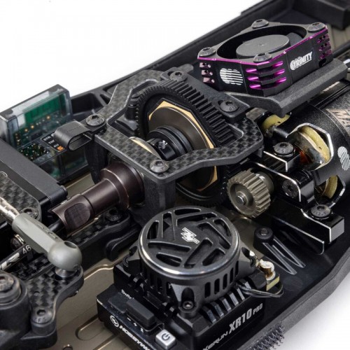 The kit includes popular option parts such as an aluminum chassis, carbon fiber components, dogbone center driveline, high-volume differentials, and expanded tuning options to maximize performance.